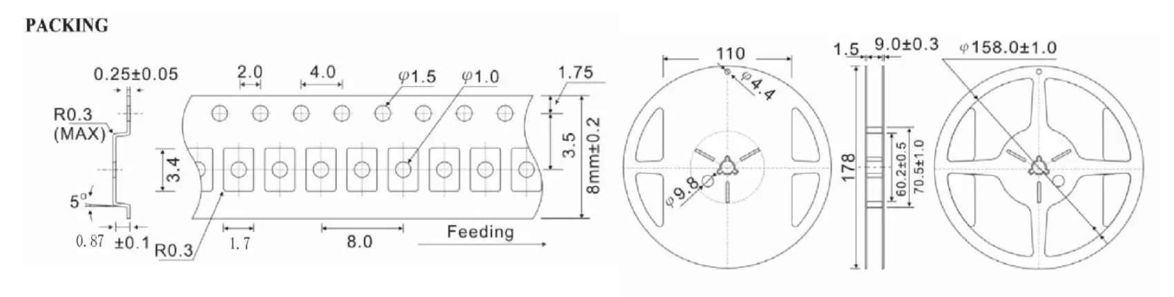 | Khoảng nhiệt độ bảo quản (TSTG) | -55℃~+125℃ | ||