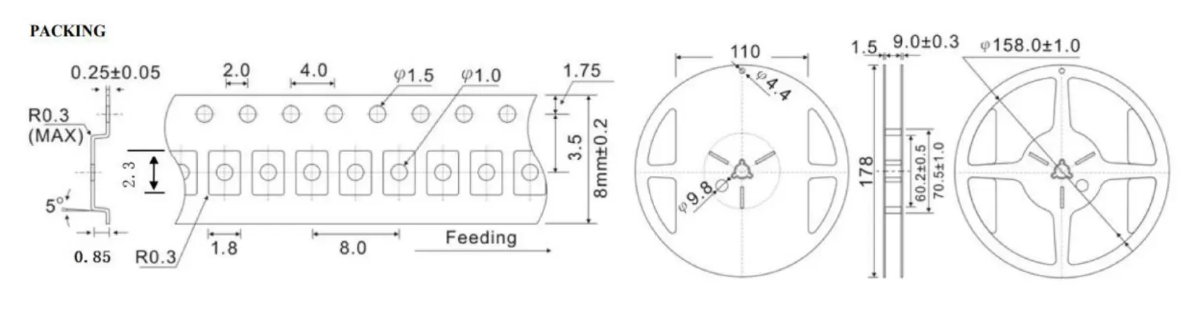 | Phạm vi nhiệt độ lưu trữ | -55~+125°C | |